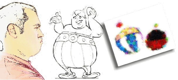 La cara de Hobo me salió en el estilo Uderzo, pero la de Iñaki me fue imposible. Que el ratón no está hecho para dibujar.